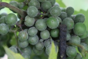 Die Verwendung von KE-mineral kann zu sichtbaren Flecken (leichte staubige Schleier) auf Trauben führen. Will man dies vermeiden, darf die Konzentration von KE-mineral nicht mehr als 0,4% in der Sprühlösung betragen. Im Zweifelsfall ist es ratsam, die Mischung vorab an einigen Stöcken zu testen, um festzustellen, ob KE-mineral-Schleier auf den Trauben zurückbleiben.